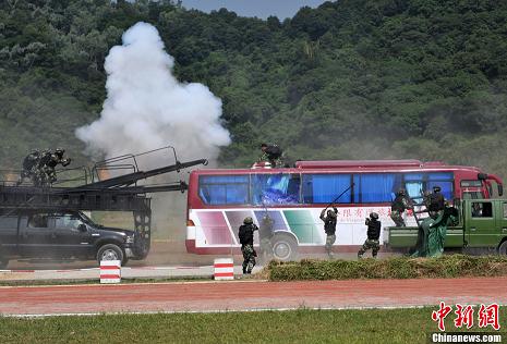 亞運(yùn)執(zhí)勤武警舉行反劫持演練